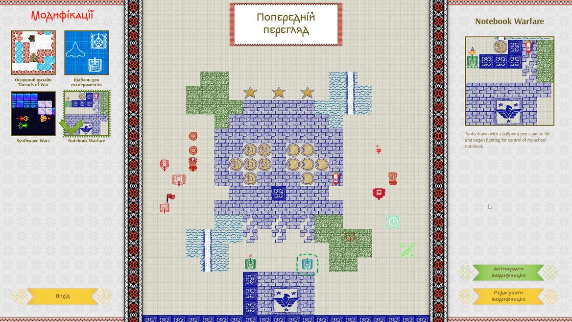 Нагадаємо, що українська гра Threads of War, створена геймдизайнером студії Creoteam Андрієм Костюшко та його 13-річним сином Аскольдом, вийшла влітку минулого року. Вона поєднує механіки класичної гри епохи NES Battle City та роуглайт-механіки з піксельною графікою в дусі української вишивки й розповідає про російське повномасштабне вторгнення.